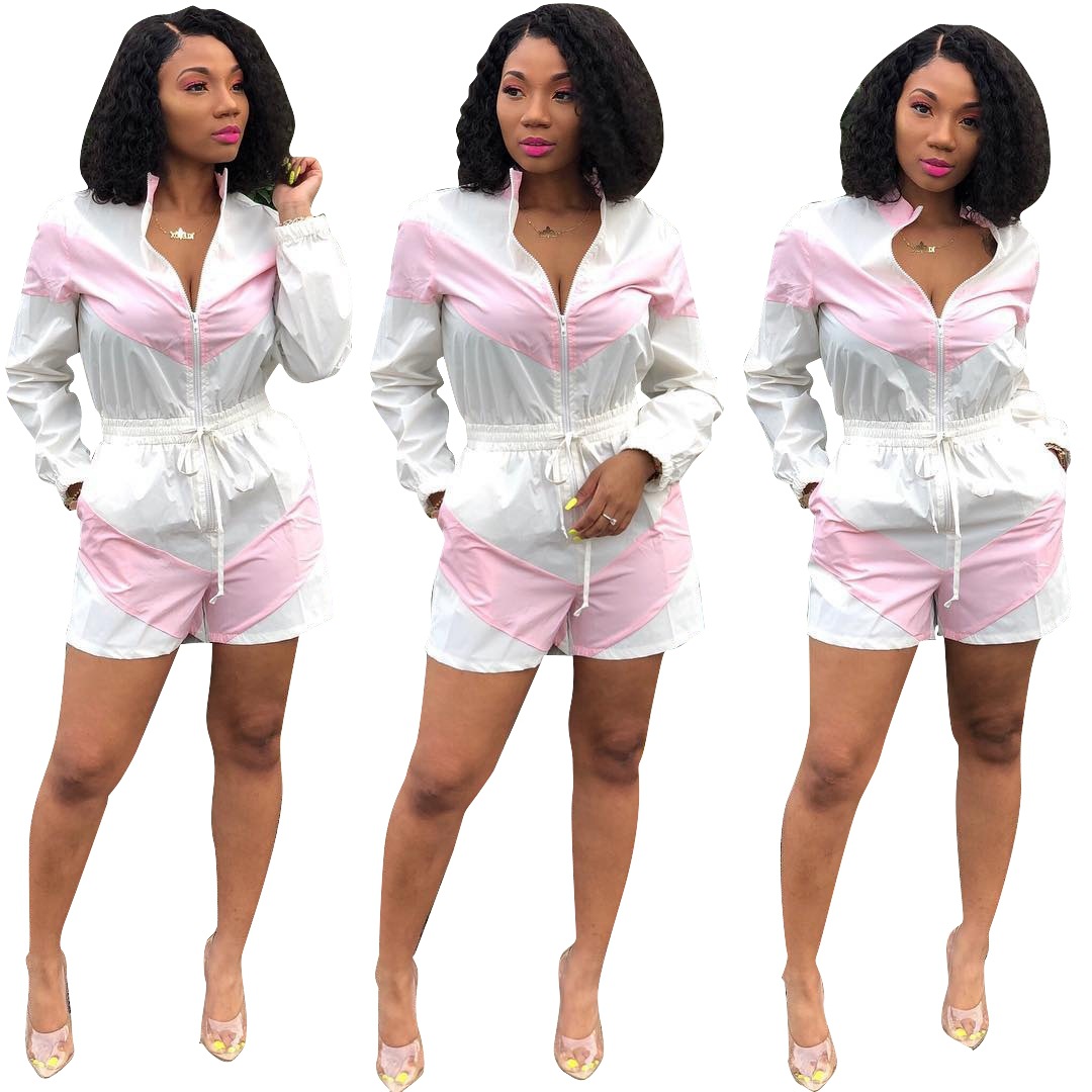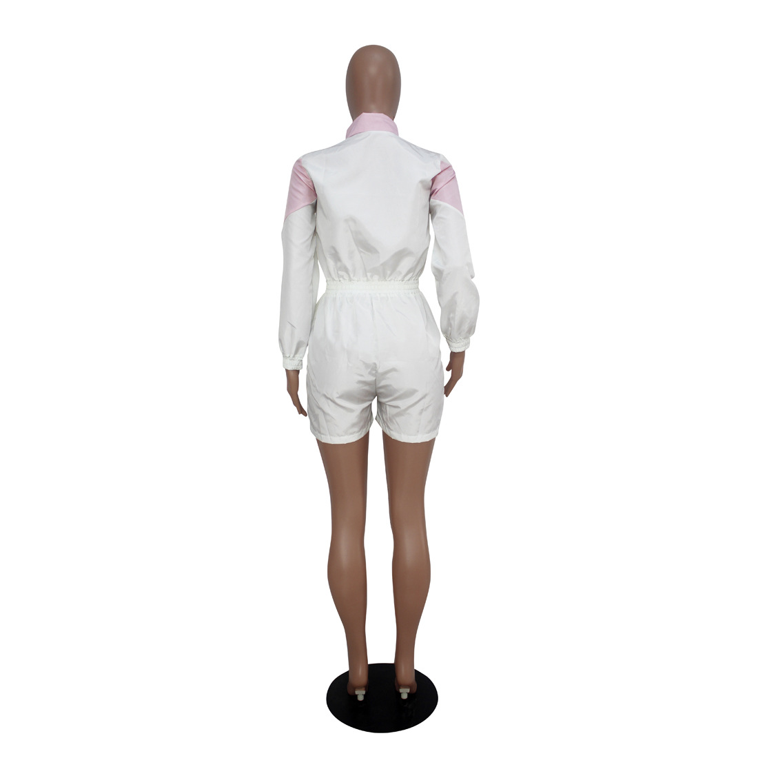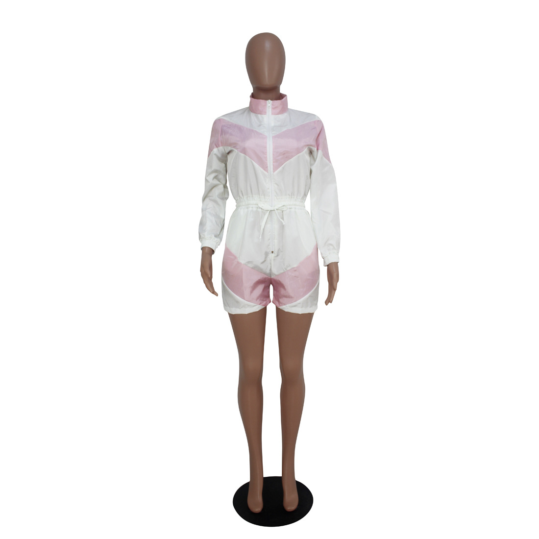 Sports And Leisure Solid Color Stitching Long Sleeve One-piece Shorts