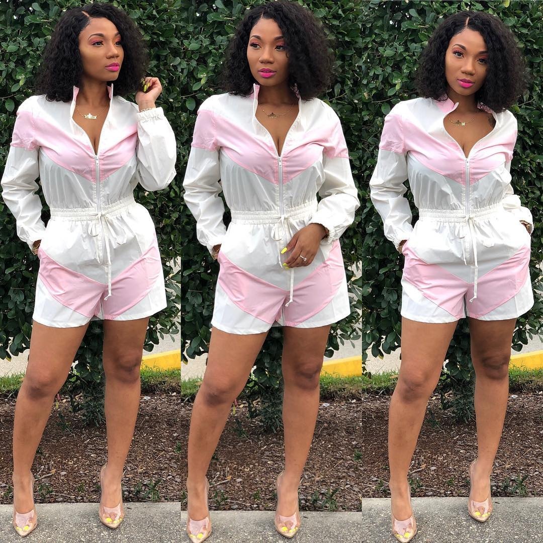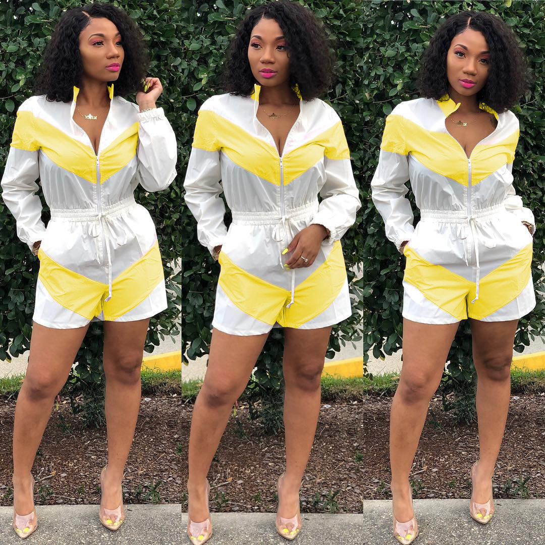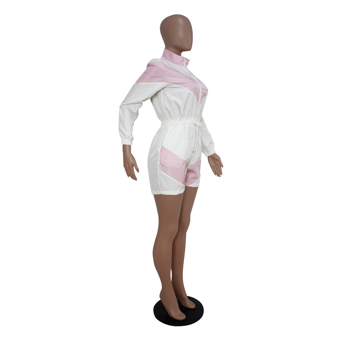 Sports And Leisure Solid Color Stitching Long Sleeve One-piece Shorts